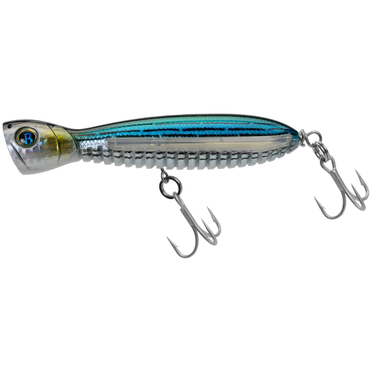 A Patrick Sebile design, the Flying Popper is a narrow-necked popper with greater casting & action. The side wings enhance aerodynamics and give the lure lift once it’s in the water. Low air friction ribs reduce air resistance and add water turbulence. That means the Flying Popper casts farther and moves more enticingly than any other bait of its kind. Shaped for castability and versatility – from still to rough waters, it is aerodynamically engineered to increase casting distance and experience tuned actions that bring in more fish. Unique multi-action versatile lures which can pop, spit, walk the dog or can create a bubble trail – and even swim like a billed minnow! Ocean Born Flying Poppers come in 4 types – Floating (FL), Sinking (SK), Super Long Distance (SLD) and Tuna Rocket. Anglers can fish these incredibly versatile lures by popping or ripping on top, walking the dog, swimming like a swimbait, and the SLD model can even be jigged on the bottom, unique for a top water lure – talk about versatility here!! Simply change model and adjust speed and type of retrieve, so you will be able to use this lure in a wide range of situations, everywhere, all year round. FL and SK models come with 4X treble hooks; the SLD model comes with 6X treble hooks and the Tuna Rocket with 6X single hook – enough to handle any fight!!