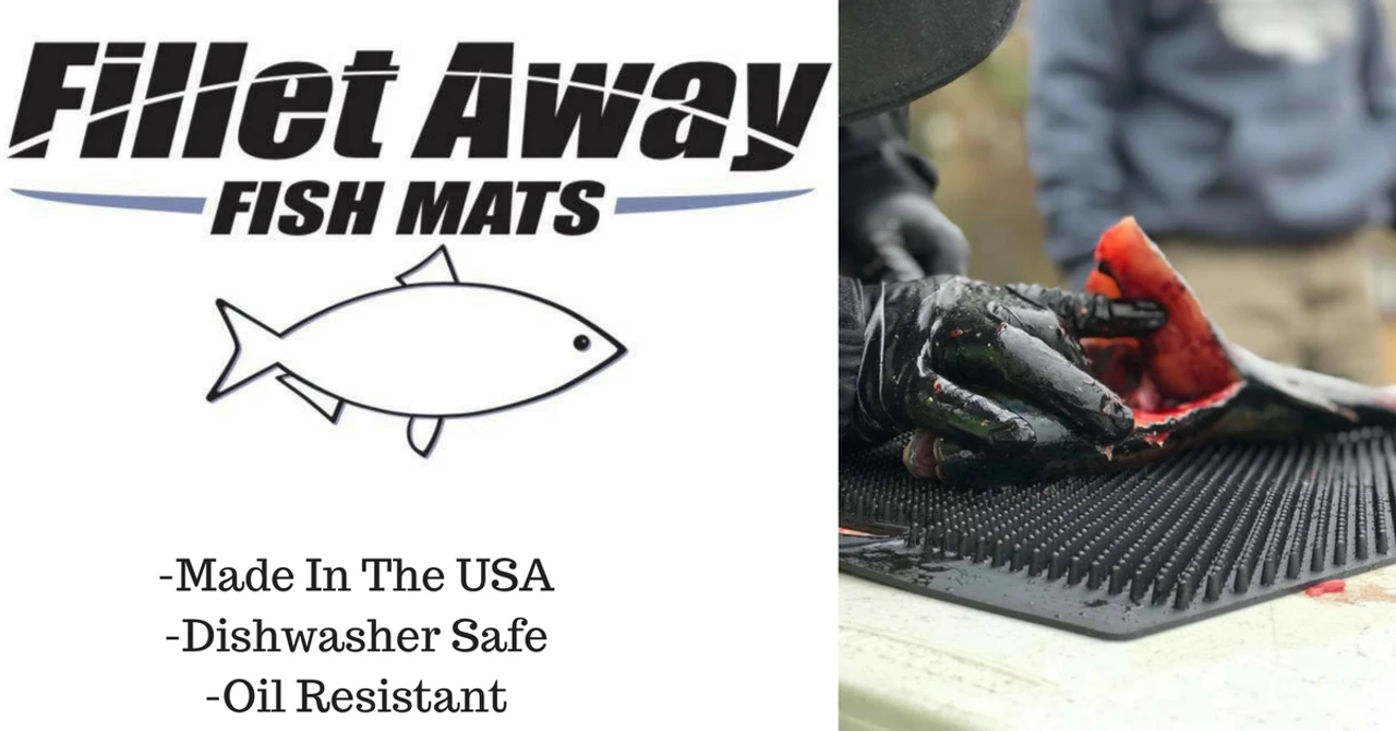Fillet Away Fish Mats are made of a high quality TPV material that does not absorb oil. The rows of pegs on this fish cutting mat hold the fish securely in place while it is being cleaned. The result is a fish fillet mat that works to your advantage and is also easy to use and clean. No more stinky slippery fillet mats.Â